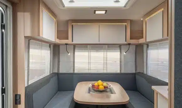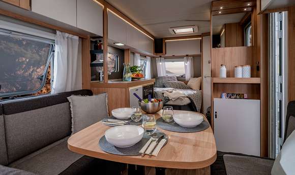 Waaruit een geslaagd interieur bestaat? Natuurlijk talrijke mooie features, veel opbergruimte en slim ontwikkelde indelingen. Dat klinkt verstandig? Is het ook – daarom past het precies bij onze KNAUS SPORT. Omdat verstand echter niet alles is, hebben onze designers zich extra ingespannen. Zodat goed niet alleen goed is, maar er ook nog goed uitziet.