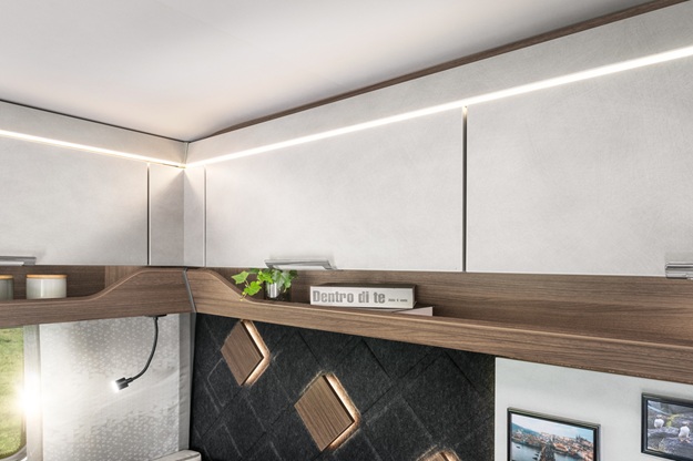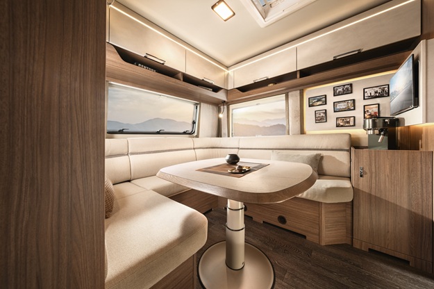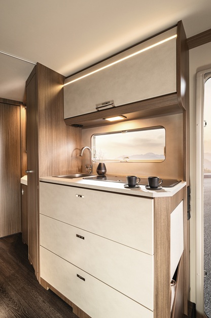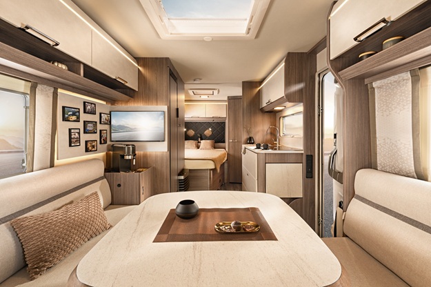 Dompel u zelf onder in de wereld van TABBERT CAZADORA, waar levendige luxe en gezellig comfort samen een onvergelijkbare sfeer creëren. Elk aspect van het interieur, van het zorgvuldig gekozen materialenpalet met warme houttinten en heldere accenten tot de handgemaakte wandpanelen in het exclusieve TABBERT‐ruitdesign, getuigt van oprechte aandacht voor detail en esthetisch raffinement.