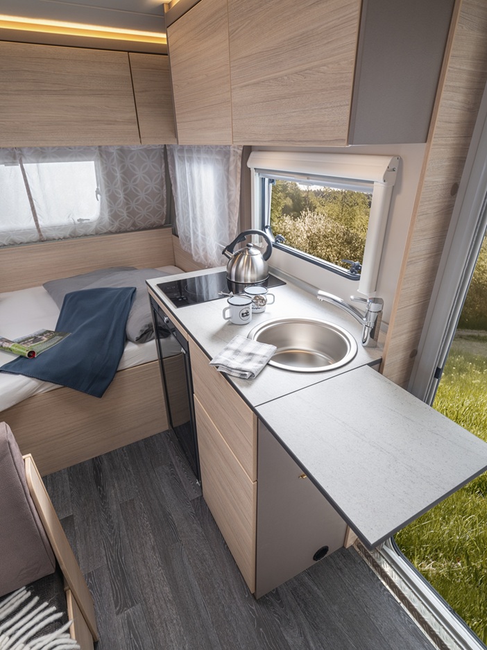 Een volledig elektrische caravan. De CaraCito is consequent anders. Van volledig elektrische uitrusting tot onovertroffen prijs‐kwaliteitverhouding en compromisloze kwaliteit. Dit model heeft een modern, minimalistisch interieurontwerp met frisse kleuren, duidelijke lijnen en harmonieuze materialen om een jeugdige, eigentijdse look te creëren – functioneel, stijlvol en gericht op de essentie.