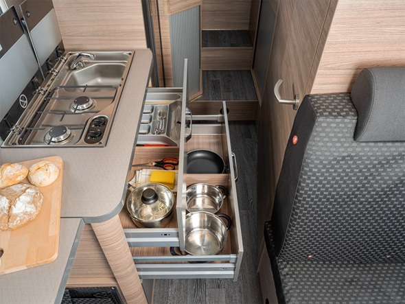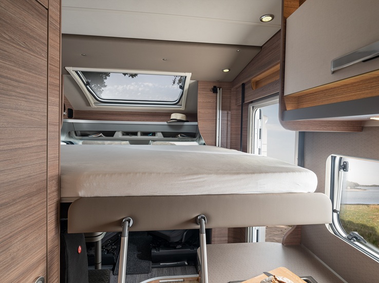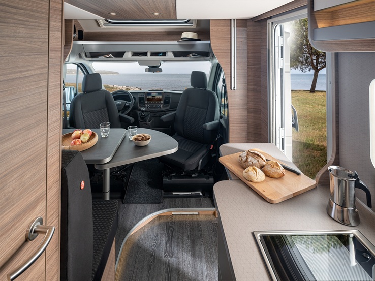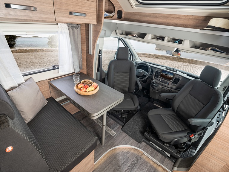 Aan de buitenkant overtuigt het karakteristieke design van de CaraSuite Ford met het golfvormige dak. Binnenin zorgen het ruime interieur, het standaard hefbed en de geweldige stahoogte voor een echte gezelligheidssfeer.